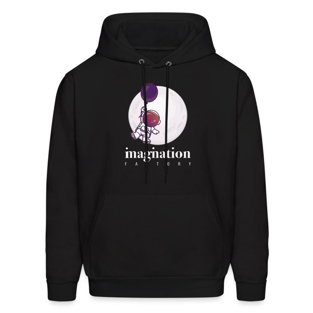 Our original Untethered Astronaut design printed on a black hoodie in multiple sizes.